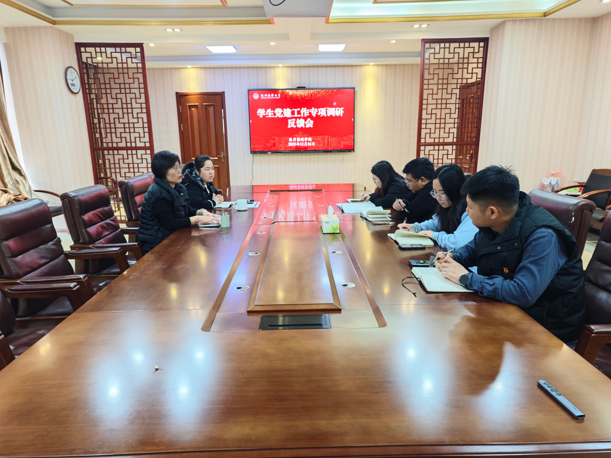 12月16日上午,学院在学院4楼小会议室召开2025年学生党建工作专项调研反馈会议。学院党委书记孙皎皎、副书记易庆艳、团委书记刘思嘉、组织员及学生...