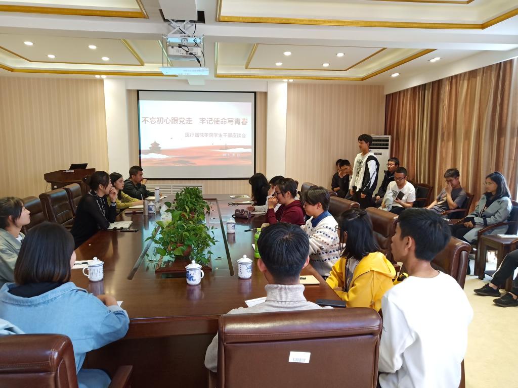 根据jdb电子游戏官方网站“不忘初心、牢记使命”主题教育安排,10月12日下午3点,jdb电子游戏官方网站于学院四楼会议室召开了“不忘初心跟党走 牢记使命写青春”学生干部座谈会。学院党委副书记赵宏格、团委书记刘娇娜与全体团委、学生会干部进行了座谈交流。