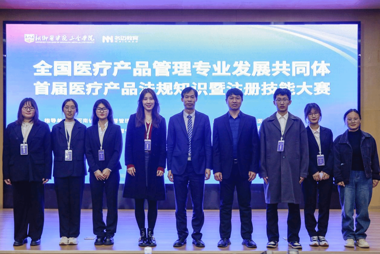 本次大赛由全国医疗产品管理专业发展共同体主办,新乡医学院三全学院和上海名迈教育科技有限公司联合承办,河南省药监局医疗器械注册管理处、药品审评查验中心相关领导,全国高校医疗产品管理专业共同体负责人、上海健康医学院医疗产品管理专业带头人蒋海洪,三全学院副院长白国强,jdb电子游戏官方网站jdb电子游戏官方网站副院长崔勇,上海名迈科技教育有限公司总经理杨磊等人出席大赛会议。