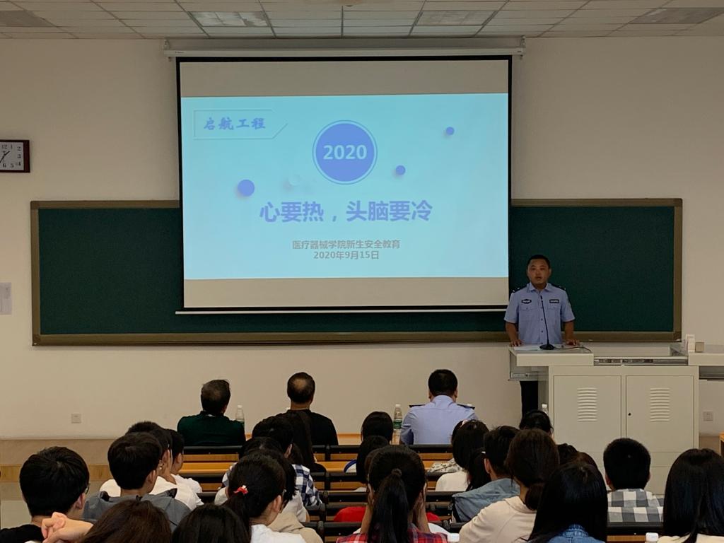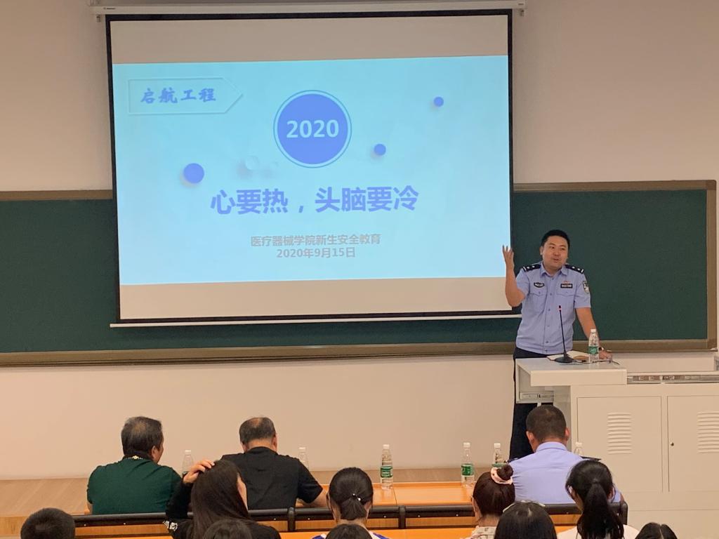 2020年9月15日下午,jdb电子游戏官方网站新生起航工程第一课校园安全教育在jdb电子游戏官方网站南校区第三教学楼103教室举行。石桥子派出所王剑副所长、高新区公安分局刑警大队预审中队长姜楠警官、学生处安平处长、保卫处裴志强副处长、全校辅导员及jdb电子游戏官方网站2020级全体本科生和研究生新生参加活动。活动由jdb电子游戏官方网站党委副书记赵宏格主持。