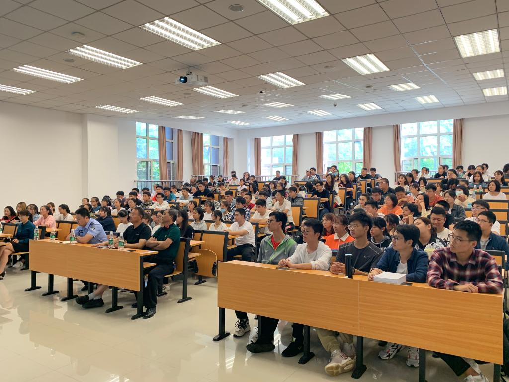 安全教育从2位警官的预防电信诈骗中拉开序幕。王剑副所长以自己丰富的办案经验为基础,通过具体案例有针对性地从刷单诈骗、贷款诈骗、冒充类诈骗及游戏诈骗等校园高发类电信诈骗入手,专业全面地为大家讲解了最新的电信诈骗种类与案情分析,并从诈骗犯的角度给大家详细地介绍了办套卡、洗钱等诈骗流程,让大家从受骗心理、作案手段与侦破方式各方面全方位了解与感知,提升网络安全意识,同时也感慨诈骗分子的与时俱进。姜楠警官结合从警多年的感受,风趣幽默地为大家讲述了电信诈骗的防范措施,向同学们提出“不贪图、不妄想”、“冷静甄别”及“汇钱警觉”三点意见,从源头上给予了同学们警示教育。经过2位警官一个半小时的讲解,大家对电信诈骗有了一个全面系统的认识。保卫处裴志强副处长从消防安全、交通安全、人身安全及网络安全四方面为同学们进行安全教育。裴处长结合多年的工作经验,结合学校、学生的实际,将防火、救火及逃生的理论知识与近年来各地高校的真实案例相结合,生动形象地为大家描绘出火灾的发生与救援场景,教育同学们时刻保持警惕,增强防范意识,提升防范能力,远离安全隐患。