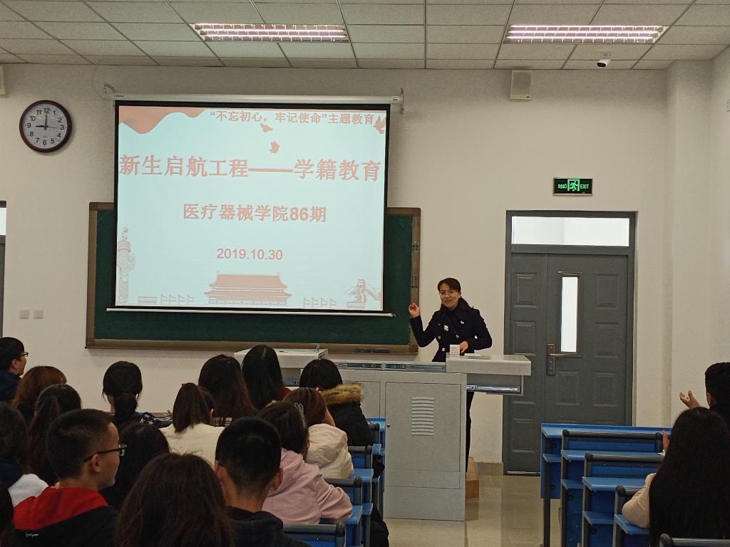 2019年10月30日,教务处副处长、jdb电子游戏官方网站副院长项荣武为全体86期新生做学籍教育讲座。学院党委副书记赵宏格、辅导员宋菁参加活动。