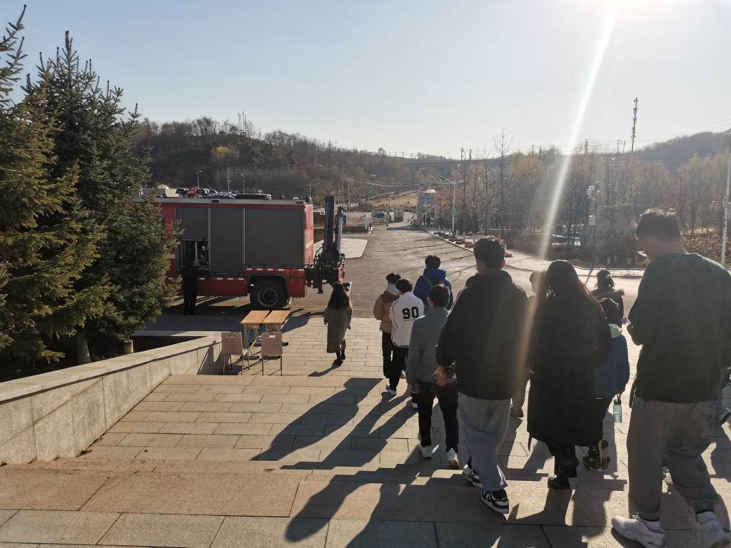 王志文参谋以自身经历及重大消防事故为切入,对学生们进行了常见火灾类型、灭火器使用方法及火场自救逃生等方面的技能培训,结合当下热点“梨泰院踩踏”事件,传授学生安全逃生技能。在场学生积极参与,熟练掌握相关知识,并在理论讲解结束后的消防演练中学以致用,以“低头弯腰,掩住口鼻,快速有序”的逃生要领有序撤离。