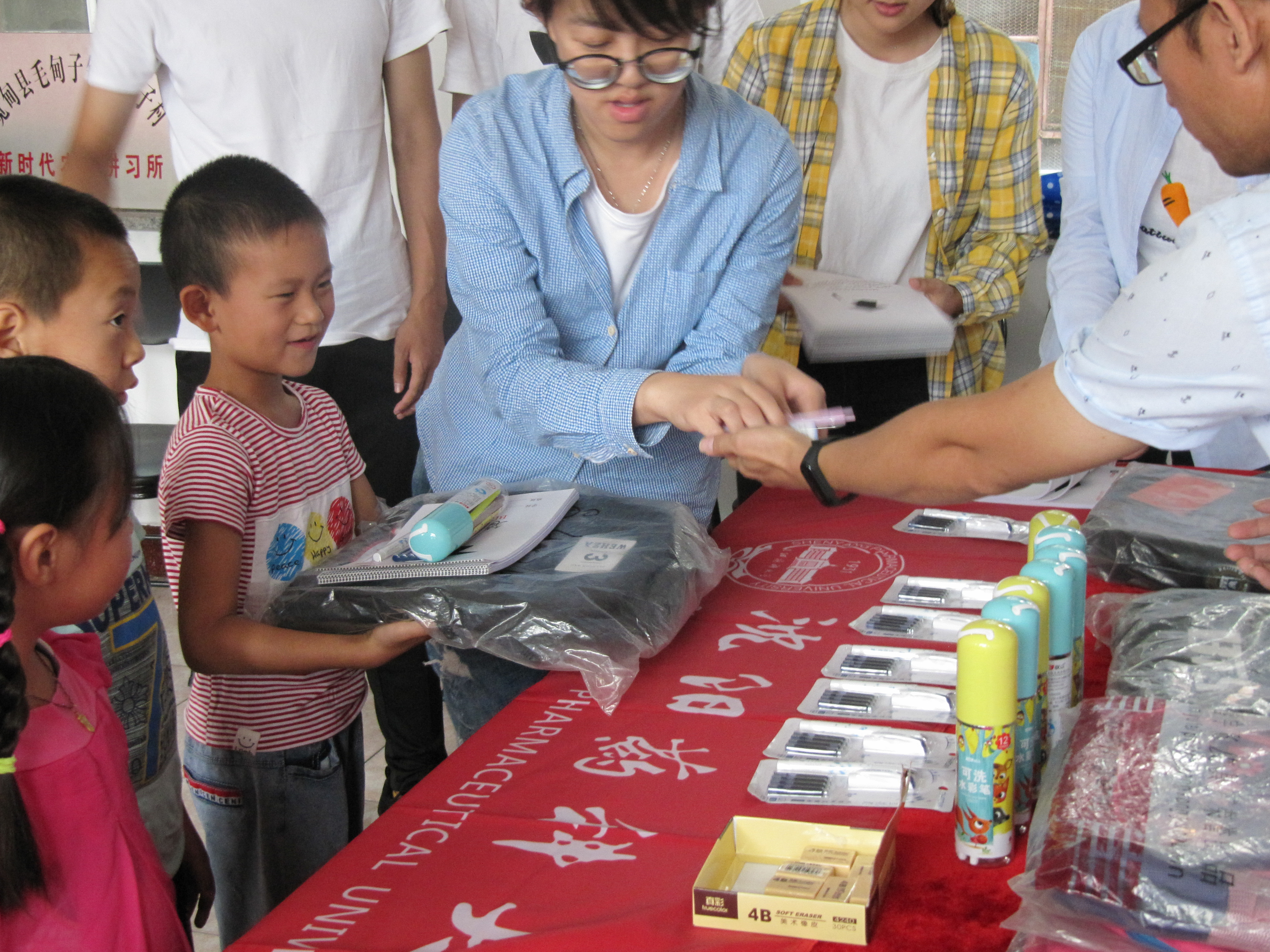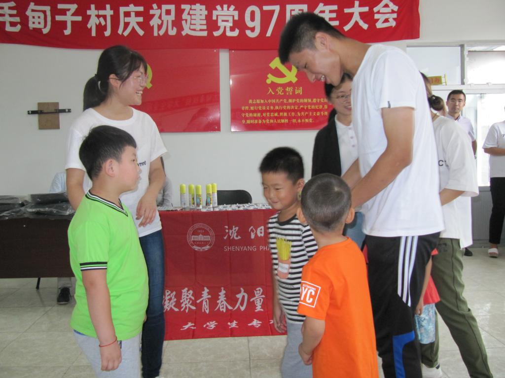 我院驻村第一书记张斯雯及学校驻毛甸子村第一书记李岱瞳负责接待了学院一行。在简单整装了行李之后,团队前往毛甸子、毛山子两个村子开展相关扶贫工作。当天下午,团队于村支部委员会办公室开展教育实践活动。在学院团队经过精心部署和组织安排下,活动现场的气氛高涨,在与学生们的互动中,团队成员与孩子们亲切交谈,鼓励他们认真学习,热爱生活,克服困难勇往直前,志存高远,长大做一名正直勇敢乐观向上的人。活动结束后,团队成员给每位小朋友送上一份学习用品,资助有限但心意无限。