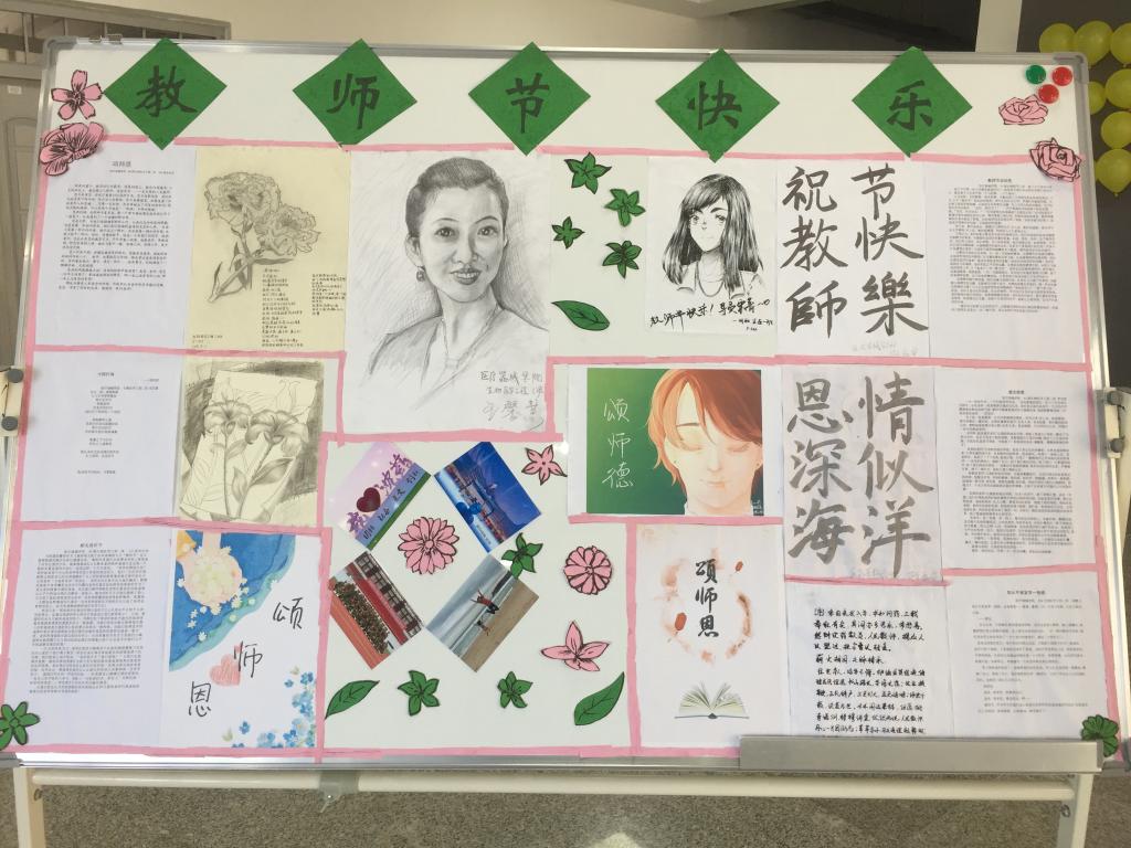 在一周的活动安排之中,同学们热情高涨、积极地参与到活动中,上报的征文、书画、摄影、线上祝福等作品异彩纷呈。在“颂师恩”征文活动中,同学们借文抒情,用细腻的笔触回忆了求学路上老师的风雨相伴,用真挚的情感表达了对老师的感恩之情。在“师恩难忘”黑板报活动中,同学们创作出一幅幅温暖人心的板报,内容生动丰富,情感真挚深沉,构思巧妙精致,色彩缤纷靓丽。每一幅画、每一个字都诉说着学生对老师深深地感激之情,是学生送给老师最好的礼物。83期王馨慧同学和85期新生胡丽同学的素描画像细腻,灵动地展现了老师的风貌;83期陈鹿华和潘泓的书法挥斥方遒,祝福老师们节日快乐;83期李心舒和84期何正钰的手绘作品也充分展示了学生们对老师的敬爱之情。此外还有一系列的征文也排列展示在了jdb电子游戏官方网站正厅的展板上。在院学生会和学院同学的共同努力之下,活动展览如期在教师节当天与师生见面。