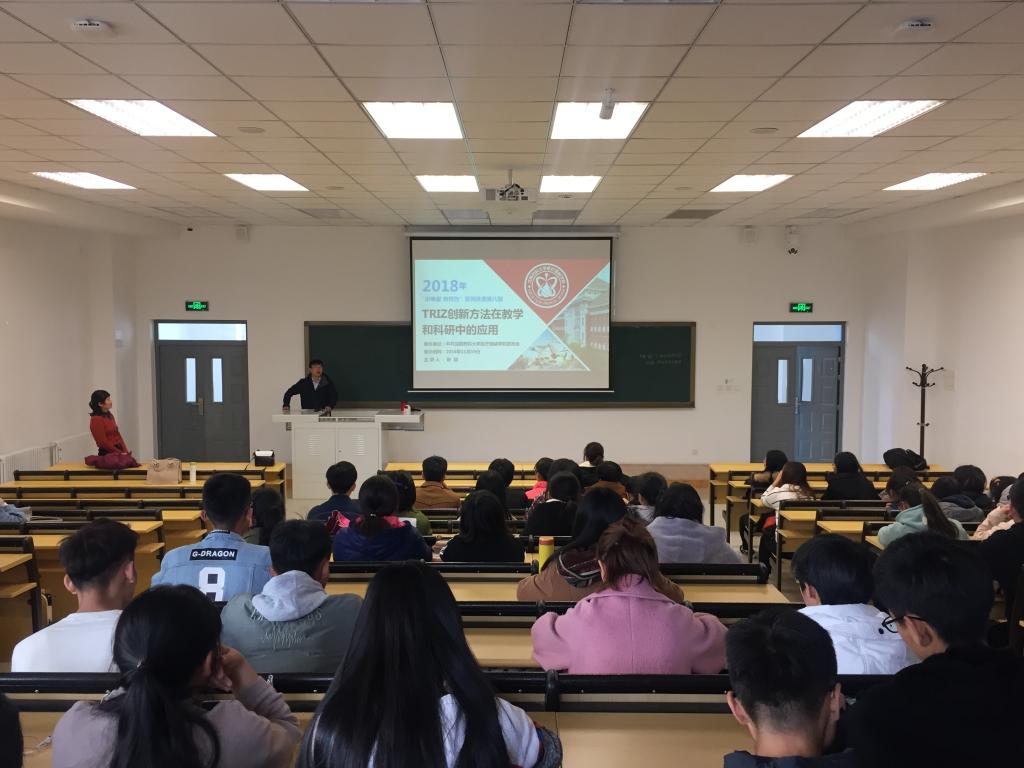 11月19日,jdb电子游戏官方网站党委在第四教学楼405室举办“讲奉献、有作为”系列讲座第八期,由学院物理教研室副教授、生物医学工程系党支部书记赵喆老师做题为“TRIZ创新方法在教学和科研中的应用”专题报告。学校各专业本科生、校创新方法社团学生近100人参会,讲座由副院长项荣武主持。