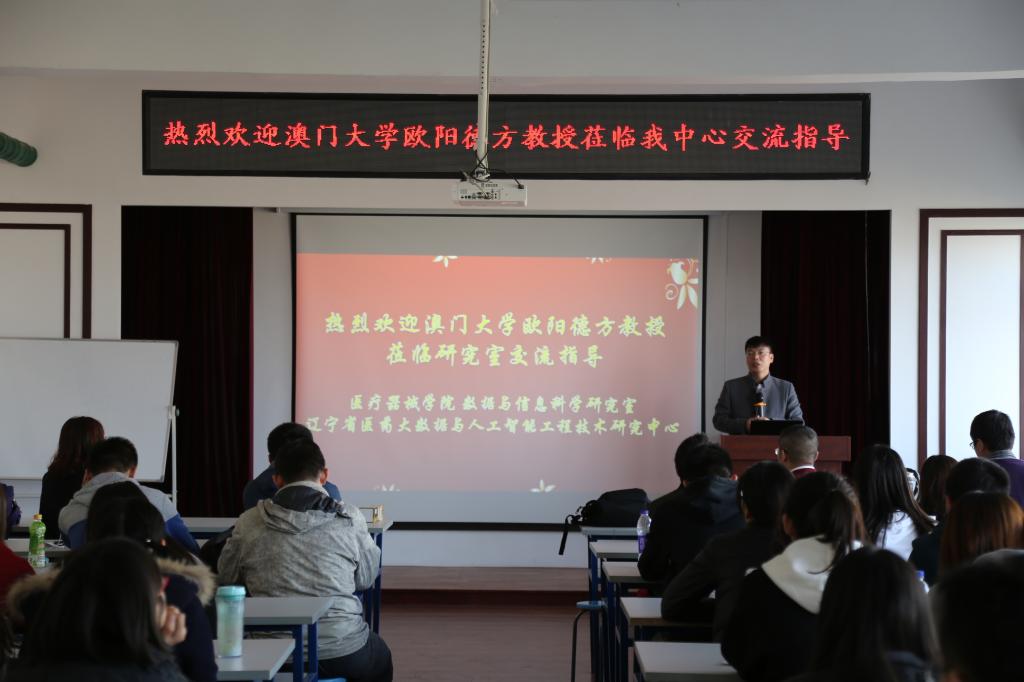 11月3日,应jdb电子游戏官方网站数据与信息科学研究室和辽宁省医药大数据与人工智能工程技术研究中心的邀请,我校63期校友,澳门大学中华医药研究院欧阳德方教授来我院交流访问,学校相关专业师生约50余人参加了本次报告会。会议由副院长项荣武教授主持。