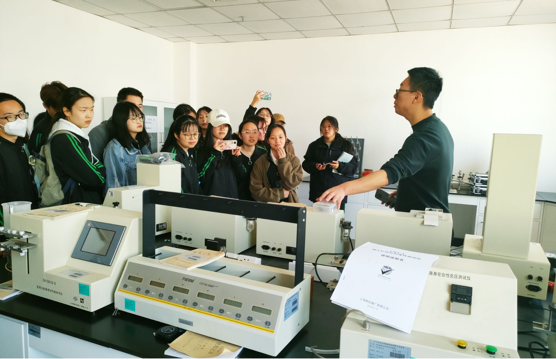4月10日,认识生产实习的第二站,师生来到了丹东欣时代生物医药科技有限公司。公司成立于2001年,深耕无源医疗器械领域,是一家集设计、研发、生产、销售、代加工0EM于一体的现代化综合性生物医药科技企业。 上午,同学们先后参观了企业独立的研发中心和化验检测中心科技大楼、GMP标准的生产车间、一流的全自动生产设备和物流仓储设施生产资源。参观中,企业的高级工程师和高级化验师为同学们细致讲解了如何针对原料、功效、安全性、稳定性进行精细的筛选、研制和检测,从生产到检测的一线体验,激发了同学们浓厚的学习兴趣。下午,公司管理人员分别就《企业发展和企业产品》、《医疗器械分类注册》、《医疗器械质量管理》做专题报告,通过实例分析结合飞行检查难点的讲解,为同学们揭开了医疗器械全生命周期管理的面纱。师生最后参观了抗美援朝纪念馆,学习了抗美援朝的光辉历史,不但更好地传承红色基因、弘扬伟大的抗美援朝精神,亦将“理论、实践、思政”教育真正融为一体。
