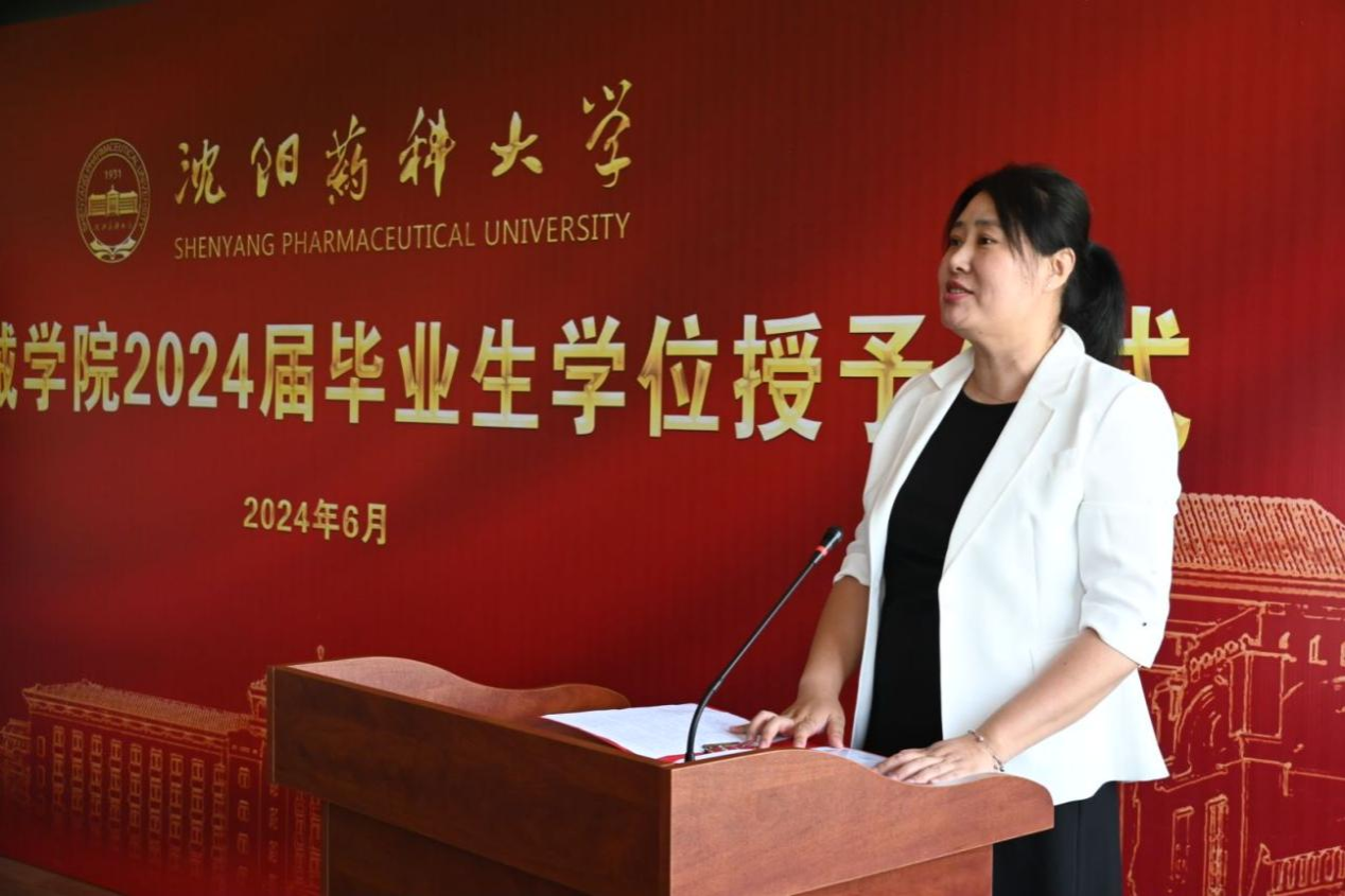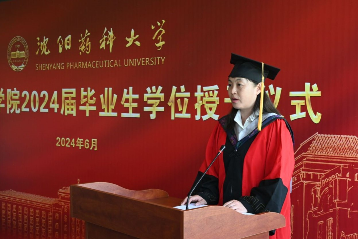 院长张嵘为全体毕业生送上毕业寄语。她向圆满完成学业的毕业生表示祝贺,并向同学们提出三点希望,希望同学们永葆好奇心,做一名终身的学习者,学会独立思考,不断增长人生经验与社会知识,成为一个终身学习者和成长者,去探索无限的可能性;希望同学们勇担时代重任,做一名坚忍的实干家,用自己远大的理想、智慧的头脑、勤奋的双手,脚踏实地工作,在未来的道路上敢为人先、勇于扛起医药创新的大旗,为祖国医药事业的发展而努力奋斗,用所学造福人类健康;希望同学们常怀平常心,做一名勇敢的前行者,维持内心的秩序、坚守自己的纯粹,干干净净做人,踏踏实实做事。