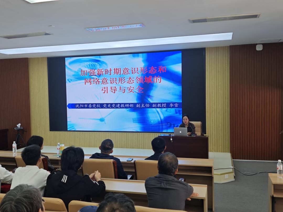 为进一步增强做好意识形态工作的政治自觉、思想自觉、行动自觉,切实提升教育工作者在新形势下的政治敏锐性和思想引领力,筑牢校园意识形态安全防线,9月20日上午,jdb电子游戏官方网站特邀请中共沈阳市委党校党史党建教研部副主任、副教授李雪到校为学院全体教师与学生骨干做“加强新时期意识形态和网络意识形态领域的引导与安全”的专题培训。